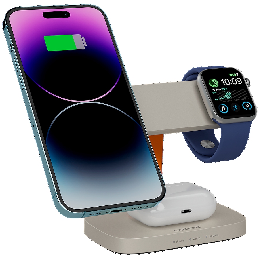 Canyon 4 in 1 Wireless Charging Stand, 30W max, Size: 70x70x70.3mm, weight: 414g, with 65W charger and 1M cable, white