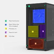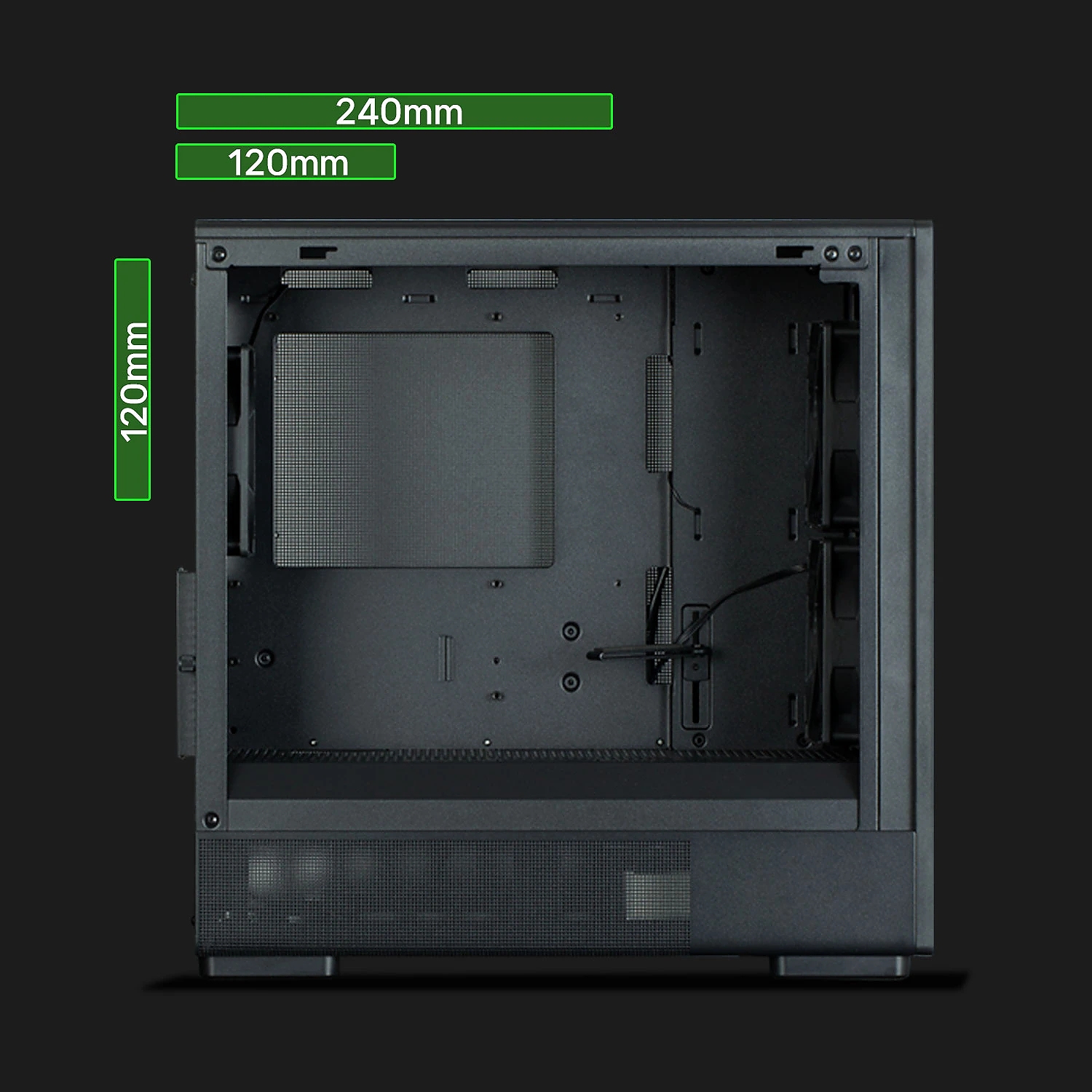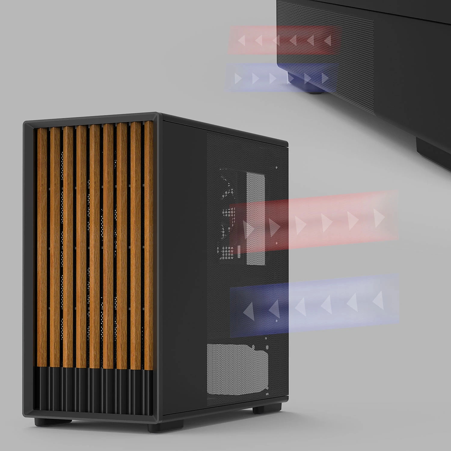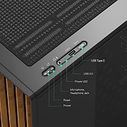 | ДОПЪЛНИТЕЛНИ | Wooden elements Premium Tempered Glass Tool-Free Tempered Glass Unrestricted Cooling Potential Easy Accessible I/O Ports Top/Bottom Magnetic Dust Filter 120mm Non-LED Fans GPU Support Bracket Included With Height Adjustment |