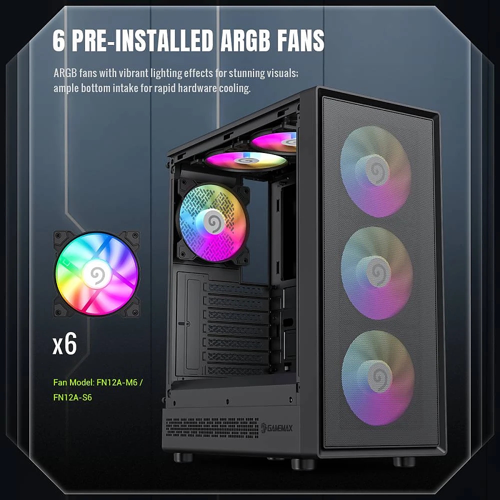 | ВКЛЮЧЕНИ ВЕНТИЛАТОРИ | Front: 3 x 120 mm (A-RGB) Top: 2 x 120 mm (A-RGB) Rear: 1 x 120 mm (A-RGB) |