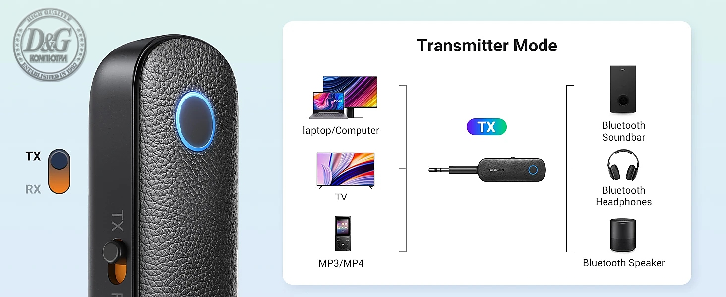 | Х-КА 1 | 2 in 1 Function: UGREEN Bluetooth Transmitter and Receiver equipped with Bluetooth 5.0 chipset |