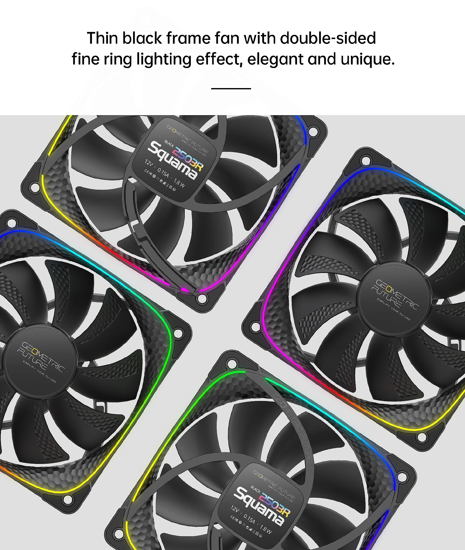 | ДРУГИ | High-performance quiet fan Elegant and chic fine circle light effect Covered with aerodynamically streamlined dragon scale particles High-performance noise-reducing soft rubber inner frame Compatible with Addressable RGB motherboard light sync Four-corner shockproof rubber pad Fine-tuned global dynamic balance for fan |