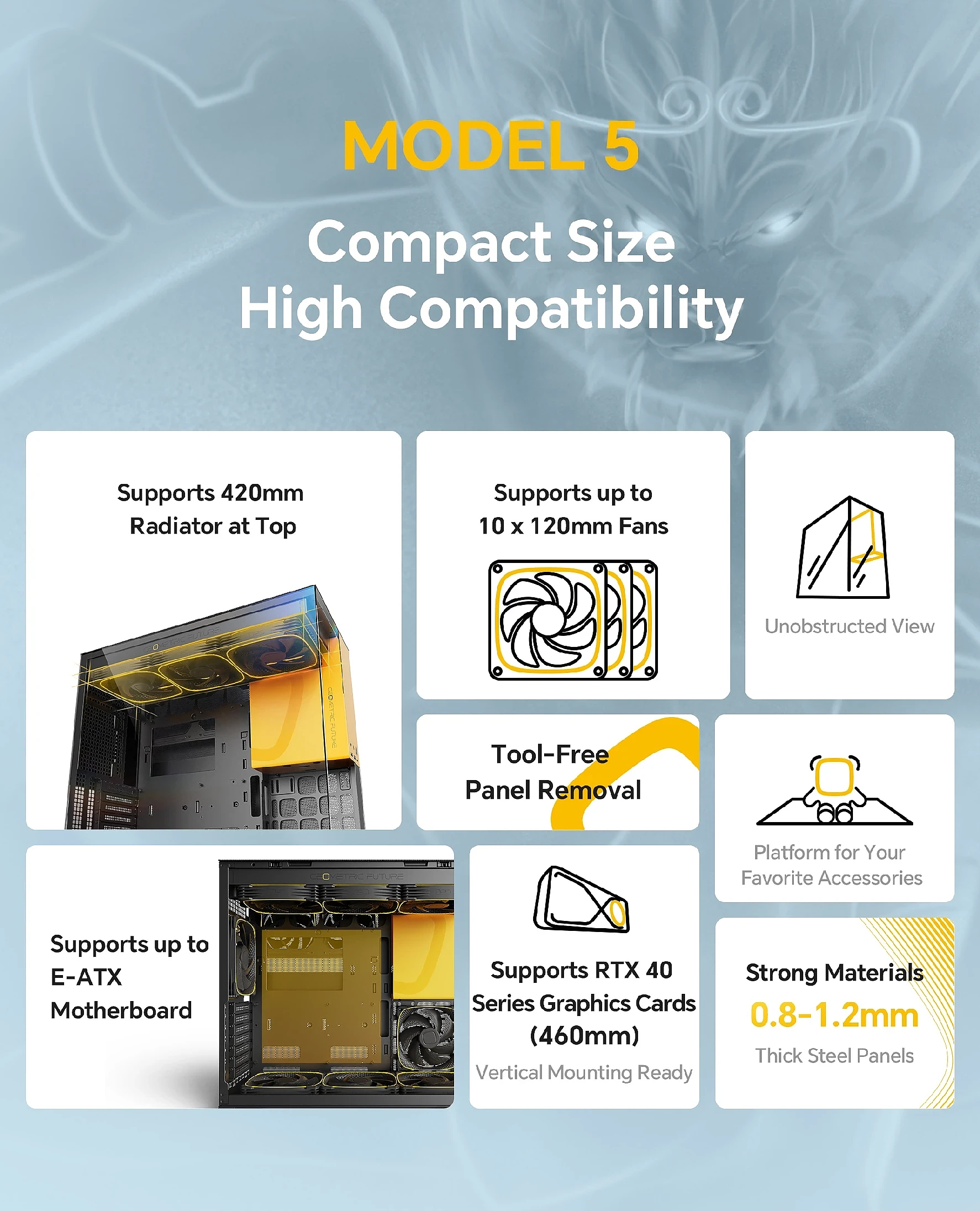 ДОПЪЛНИТЕЛНИ Supports 420mm radiator , E-ATX and 460mm GPUs