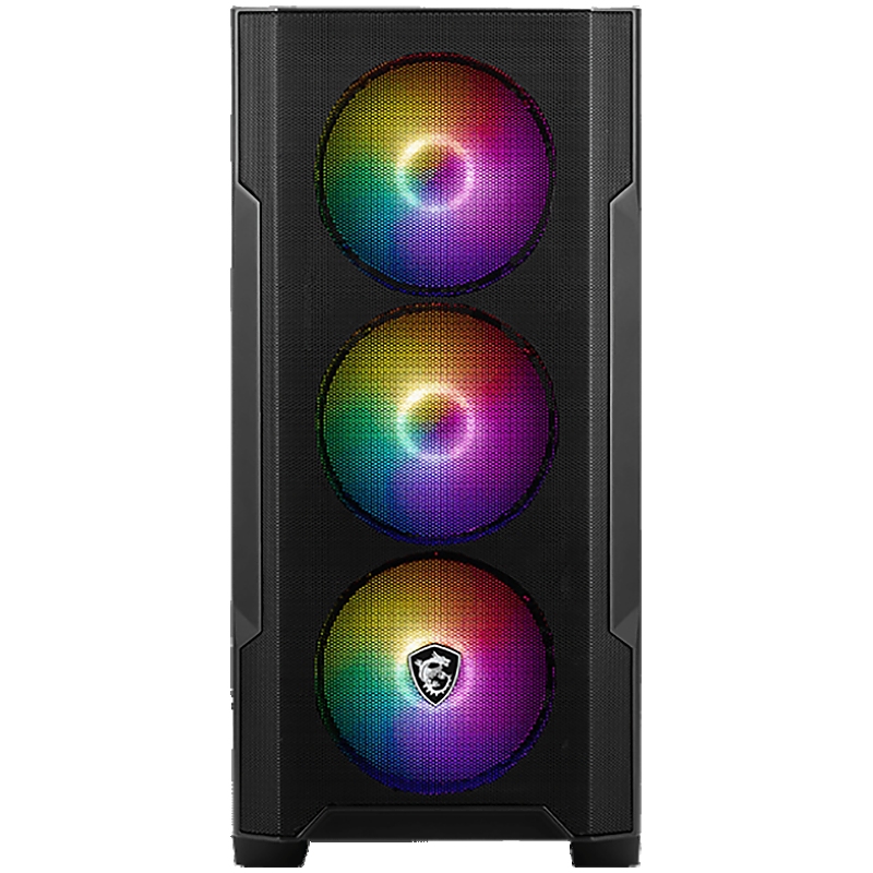 MSI MAG FORGE M100A, M-ATX Tower, M-ATX/ M-ITX, 1x USB 3.2 Gen 1 Type-A, 2x USB 2.0 Type-A, 1x Audio, 1x Mic, Power Button, 4x 120mm ARGB Fans, Mesh Panel, Acrylic panel.