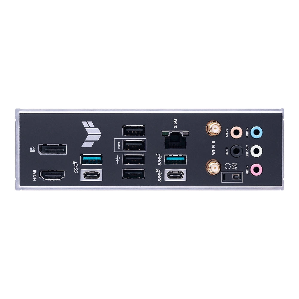 Интерфейс: 4 USB 3.2 Gen 2, 4 USB 2.0 ports, DisplayPort, HDMI, Realtek 2.5Gb Ethernet port, 5 Audio jacks, Wi-Fi Module, BIOS FlashBack button