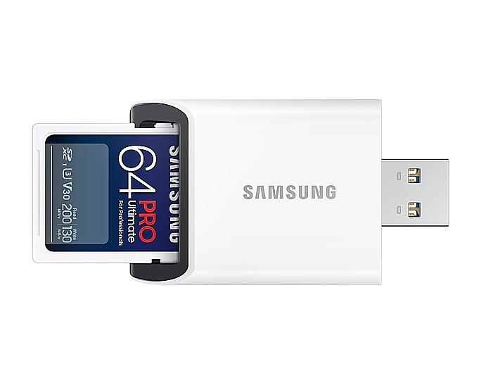 Samsung 64GB SD Card PRO Ultimate with USB Reader, U3, V30 , Read 200MB/s - Write 130MB/s