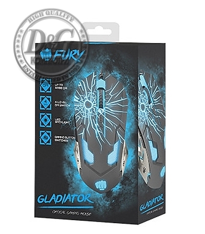 Fury Gaming mouse, Gladiator, optical 3200DPI, Illuminated black