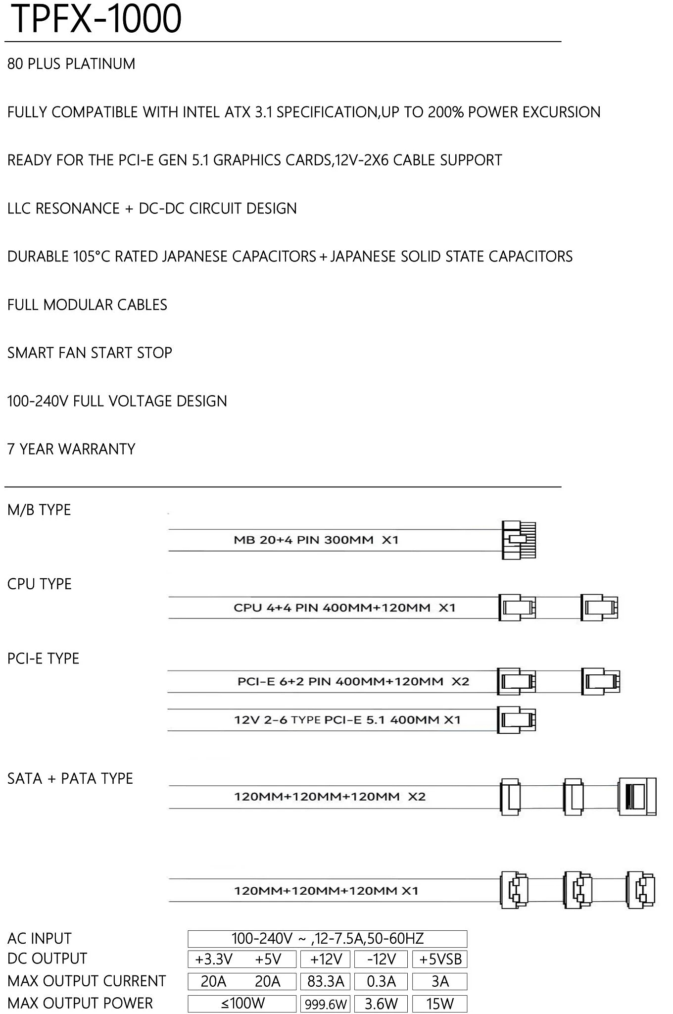 Thermalright захранване PSU SFX 3.1 1000W Platinum, Full Modular - TR-TPFX1000