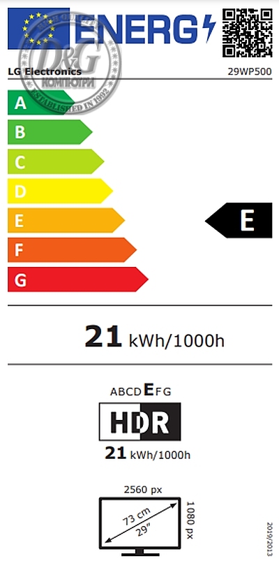 LG 29WP500-B, 29" UltraWide AG, IPS Panel, 21:9, 5ms, CR 1000:1, 250 cd/m2, 21:9, 2560x1080, HDR 10, sRGB 99% , sRGB 90% (CIE1931), Radeon FreeSync, Reader Mode, 75Hz, HDMI, Tilt, Headphone Out, Black