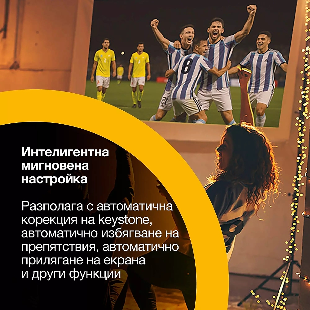 Опция за безжично прожектиране: Wi-Fi 5/6, Chromecast Built-in, Screen Mirroring, Apps for Google TV, Bluetooth Audio, Epson iProjection