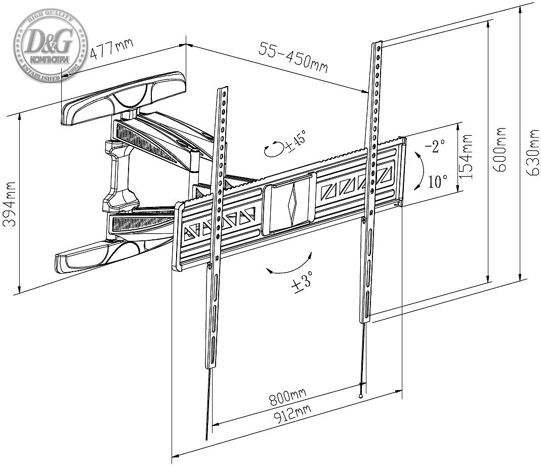 | ВЕРТИКАЛЕН НАКЛОН | -2° / +10° |