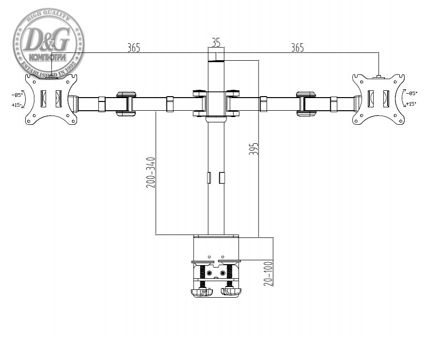 | ВЕРТИКАЛЕН НАКЛОН | -85° / +15° |