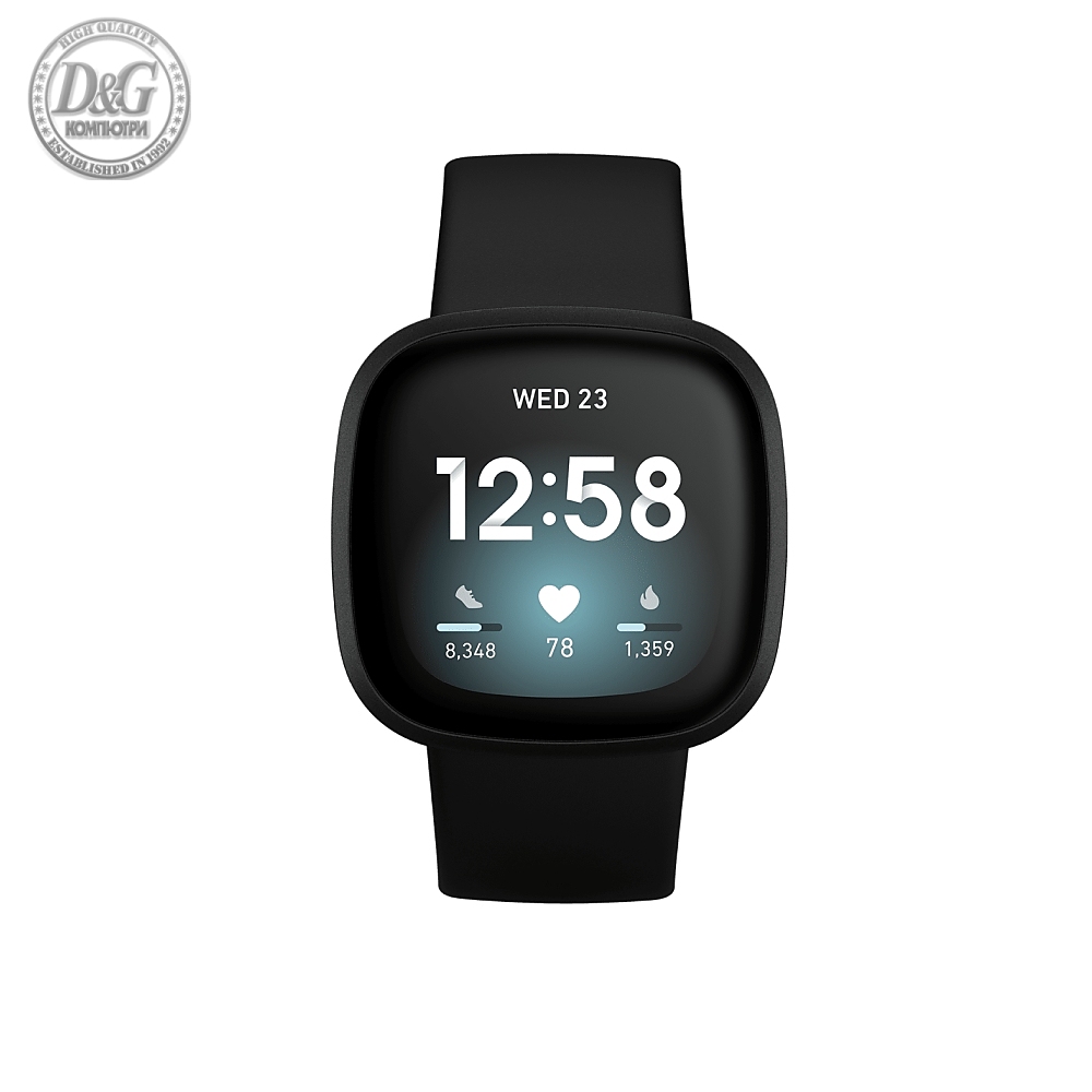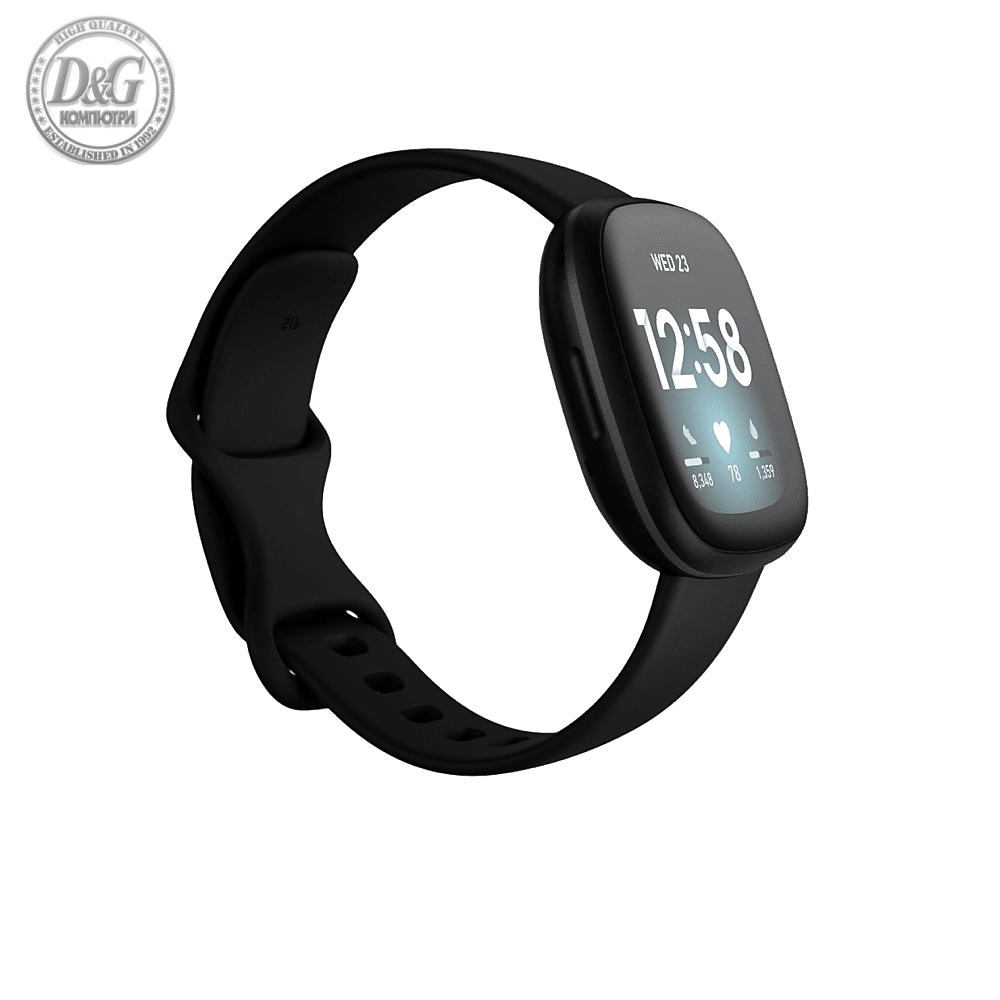 Други: Versa 3 includes a band made of a flexible material similar to that used in many sports watches, as well as an aluminium watch case