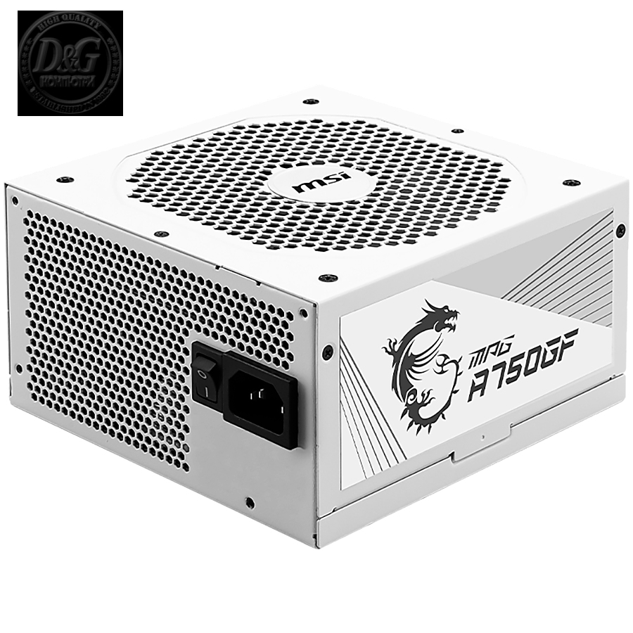 MSI MPG A750GF White Power Supply 750W, 80 PLUS Gold, Japanese capacitors, Fully Modular, Flat Black Cables, 100~240VAC, 47-63HZ, 140mm fan, 160x150x86 mm, ATX, 2xEPS, 6xPCI-E, 8XSATA, 4xMOLEX, FDD, EU plug