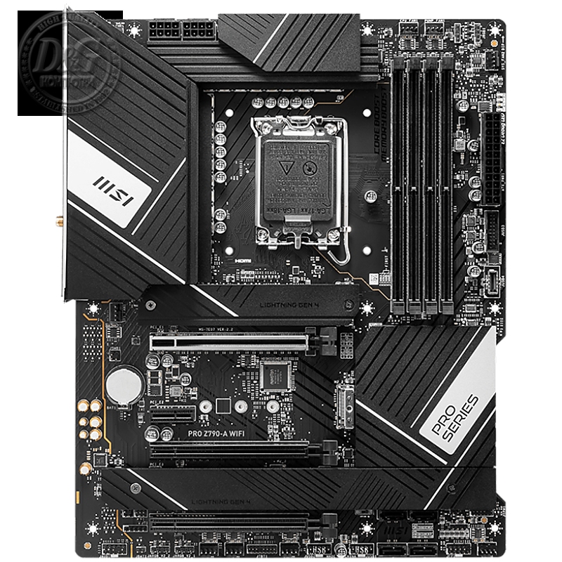 MSI Main Board Desktop PRO Z790-A WIFI (LGA 1700, 4x DDR5, HDMI, DP, 3x PCI-E x16, 1x PCI-E x1, 4x M.2, 6x USB 2.0, 4x USB 3.2 Gen1 Type A, 3x USB 3.2 Gen2 Type A, 1x USB 3.2 Gen2 Type C, 1x USB 3.2 Gen2x2 Type C, 2.5GLAN, Wi-Fi 6E, BT 5.3) ATX