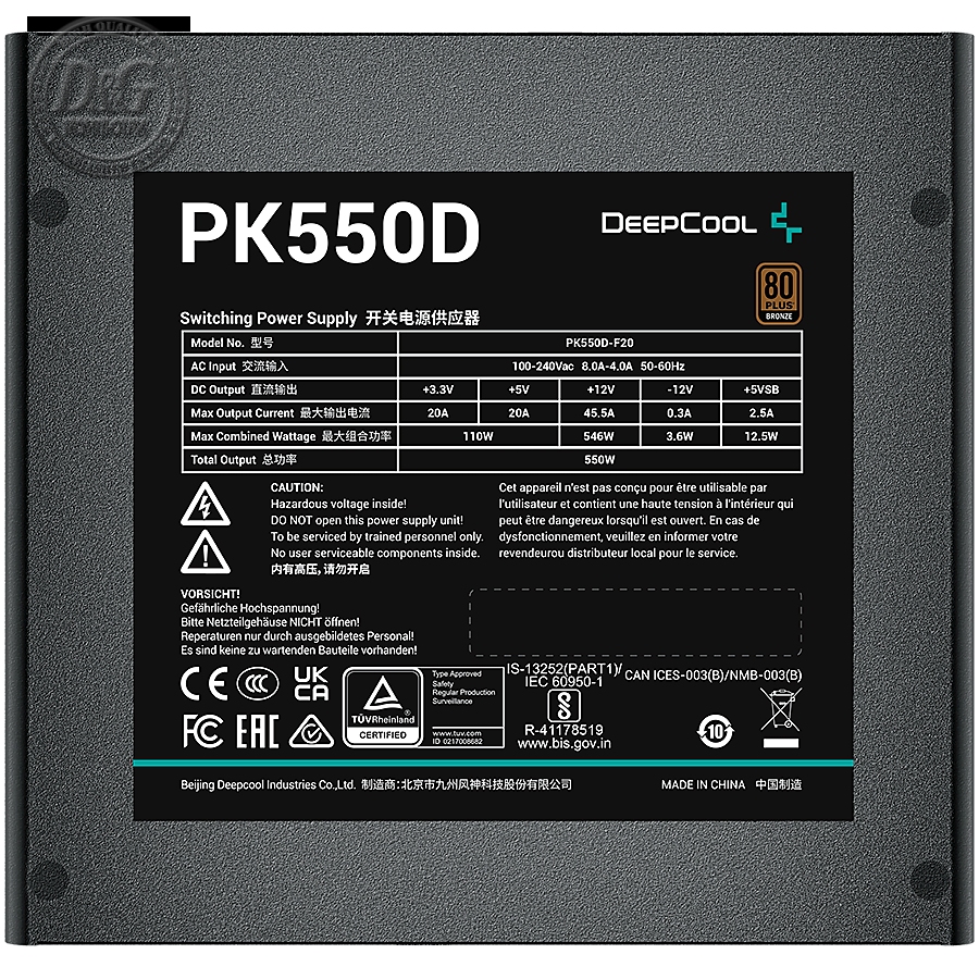 DeepCool PK550D, 550W, 80 Plus BRONZE, Taiwanese Capacitors, Flat Black Cables, 120mm Fan, SCP/OPP/OTP/OVP/OCP/UVP, 5 Year Warranty