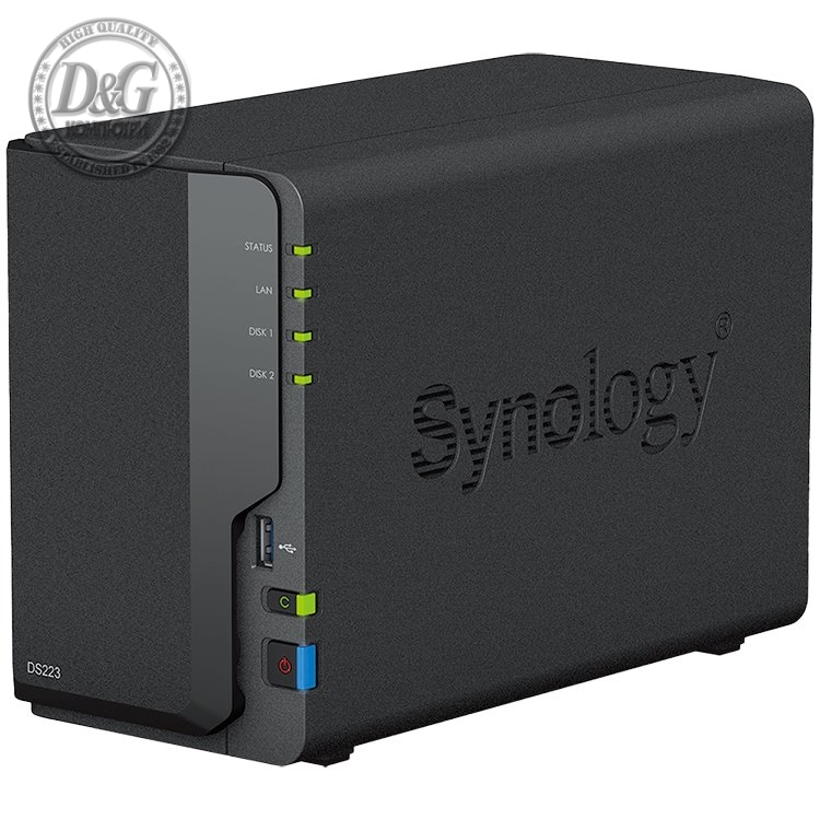 Synology DS225+, Tower, 2-bays 3.5'' SATA HDD/SSD, CPU Inte Celeron J4125 4-core (4-thread) 2.0 GHz, burst up to 2.7 GHz, 2 GB DDR4 non-ECC (expandable up to 6 GB), 1xRJ-45 1GbE LAN, 1xRJ-45 2.5 GbE LAN, 2xUSB 3.2 Gen 1, 1.3 kg, 3yr warranty