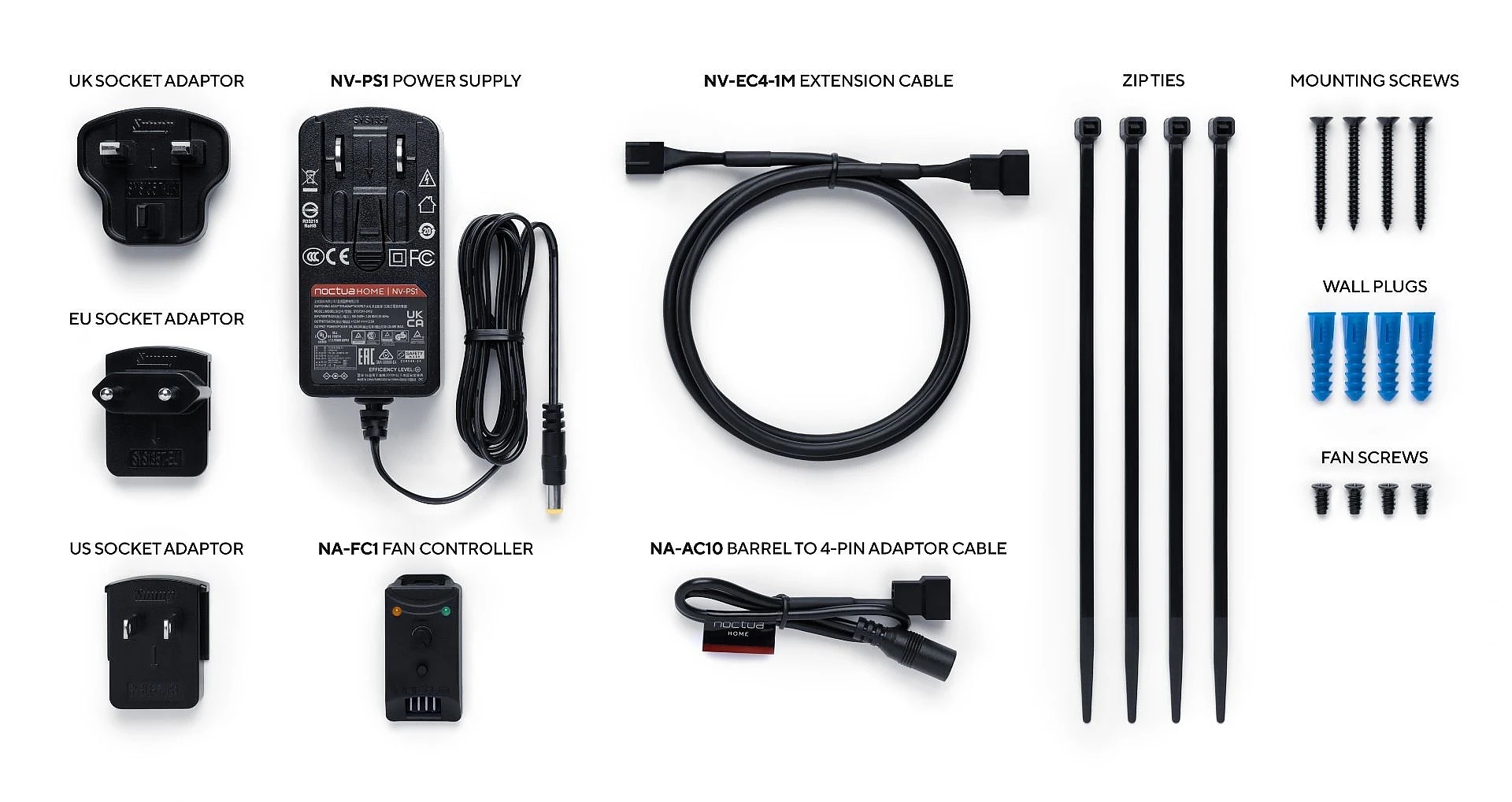 | Х-КА 5 | Scope of delivery: NF-A12x25 PWM chromax.black premium fan NA-AA1-12 airflow amplifier NV-FM1 multi-purpose fan mount NA-FG1-12 120mm fan grill NA-FC1 fan controller Cables & Adaptors: NA-AC10 barrel to 4-pin adaptor cable NV-EC4-1m extension cable NV-PS1 power supply |