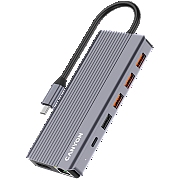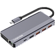 Canyon Laptop stands with hub, TYPE C F to HDMI2.0+2USB3.0+USBC3.0+RJ45+PD, TYEP C TO C cable 1m white with Emarker: HUSB332A, Material: Aluminum case+ABS+PS, Size: 245x240x27.2+/-0.3mm, Weight:1304g