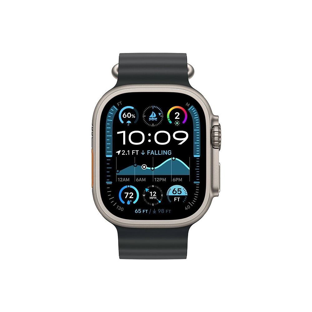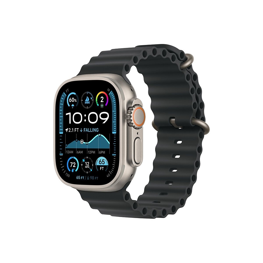 Apple Watch 49mm Band: Black Ocean Band - Natural Titanium Finish