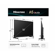 Hisense 32" A5Q, Full HD 1920x1080, QLED, Quantum Dot, HDR, HLG, DTS HD, Light Sensor, Dolby Audio, Smart TV, WiFi, WiFi Direct, 2xHDMI, 2xUSB, LAN, CI+, DVB-T2/C/S2, Black