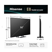 Hisense 55" E8Q, 4K Ultra HD 3840x2160, ULED, Quantum Dot,144 Hz,HDR 10+, HLG, Dolby Vision, DTS Virtual X, Smart TV, WiFi, Light Sensor, BT, Anyview Cast, 4xHDMI, 2xUSB, LAN, CI+, DVB-T2/C/S2, Singale Stand, Black