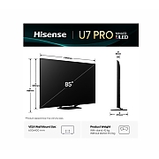 Hisense 65"U7Q Pro, 4K Ultra HD 3840x2160, ULED, FALD, Quantum Dot, 165Hz, IPS, HDR 10+, HLG, Dolby Vision IQ, Dolby Atmos, Smart TV, WiFi 5GHz, WiFi Direct, BT, Anyview Cast,light sensor,Solar Powered Remote, 4xHDMI, 2xUSB, LAN, CI+, DVB-T2/C/S2, Black