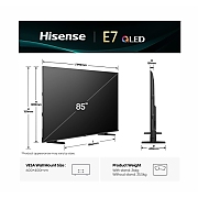 Hisense 75" E7Q, 4K Ultra HD 3840x2160, QLED, Quantum Dot, HDR 10+, HLG, Dolby Vision, DTS Virtual X, Smart TV, Light Sensor, WiFi Direct, BT, Anyview Cast, 3xHDMI, 2xUSB, LAN, CI+, DVB-T2/C/S2, Black