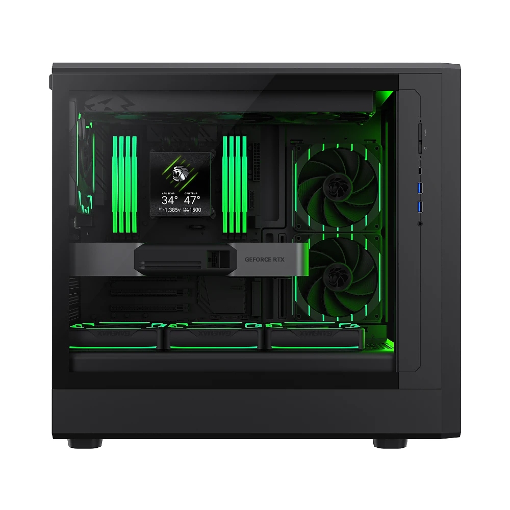 | ДОПЪЛНИТЕЛНИ | Front steel mesh Vertical airflow design for more efficient basic cooling Pre-installed with 4 ARGB/PWM fans + controller Equipped with Type-C Gen2 + USB3.0 Comes standard with an adjustable-height graphics card support bracket |